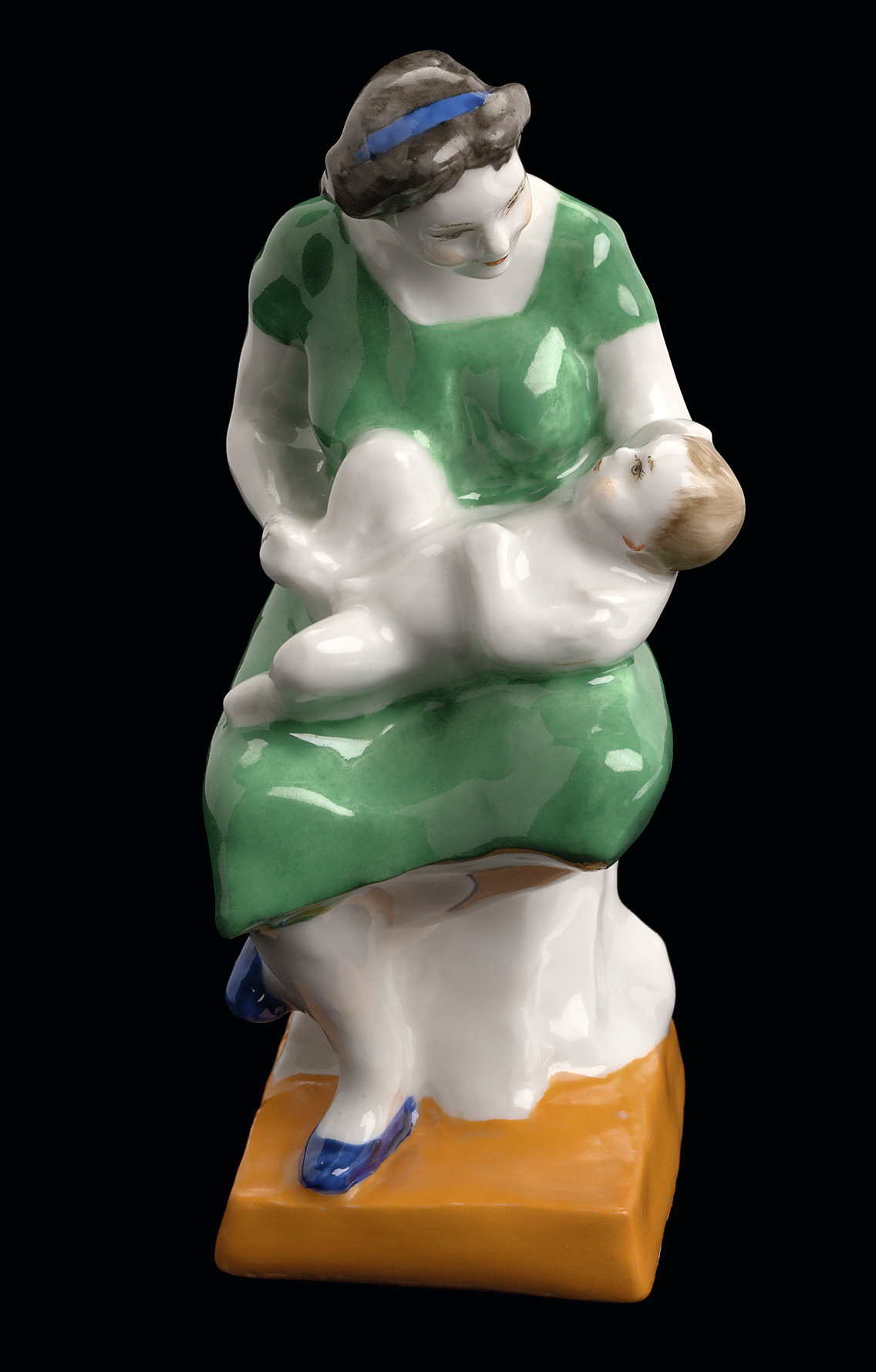 Марки: на дне основания марка «58» красным, надпись «Игроки ск. Исакова Н.» от руки красным надглазурно